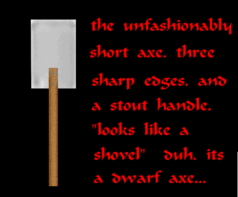 one ye like, use it til yer tired of it, find another. Weapons are like women in other ways too. Ye can't turn yer back on 'em, an they'll cut ye if yer not careful. Lastly, weapons are like women is that with e'en a wee bit o care, she'll stand by ye and give her all te save yer miserable hide wether ye deserve it or nau. |