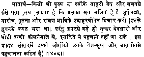 ![]() | ![]() | 49. How can we know from a person's appearance and speech that he has a malicious mind. Shurpanakha, Putana, Ravana are examples of this fact. |
