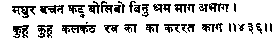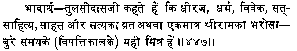 ![]() | ![]() | 21. Patience, dharma, power of discrimination, good literature, courage and firmness in truth (confidence in Lord Rama) these are our friends of bad times. |