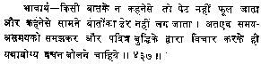 ![]() | ![]() | 7. If we dont utter some words our stomach does not swell. Similarly if we speak a lot a mountain of words is not formed. Therefore always speak appropriate after having regard to the time, the trend and after listening to the sacred intellect. |