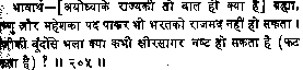 ![]() | ![]() | Bharata cannot have the ego even after acquiring the status of Brahma, Vishnu and Mahesh. How can a drop of any liquid spoil the sea of milk. |
