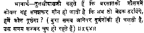 ![]() | ![]() | 10. In this kaliyuga all persons discuss about the knowledge of spirit. These very same persons then kill their Guru for a single paisa. Then they say 'Who kills?' 'Who is Killed?' 'The spirit is eternal'. |