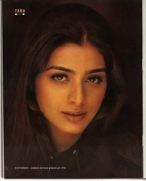 Once thought to be down for the count, Tabu surprised everyone by popping up as a leading lady in what promised to be the hottest movies in recent times. Now here she is sitting in an air- conditioned van, doing up her hair and touching up the make-up in preparation of the next shot. 'Hello!' she turns and greets you with just the right degree of distance. The best thing about Tabu is, if she doesn't pretend to be your immediate best friend, then neither does she affect an annoying worldweary aloofness. And that classically comely mug? Well, there are moments, you note, when Tabu reminds you of a star of the old world. Ethereal and elegant. Although she is not a sex symbol, she has a different kind of beauty Ñstrong features no longer based on the concept of heartshaped mouth, on the tiny nose. She has a real face which betrays a real woman.One has felt that there is something sympathetic and solid about this tall, stunning girl. She's different from other film stars. Here is a wise woman, who has known life, who understands human failings, who understands herself. Women film stars are shy, insecure when they are away from their audiences and confronting real people. Tabu is no exception, but her manner betrays a depth, a freshness of feelings.