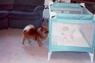 Bear checking out the new baby!