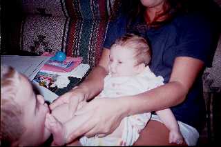 Alayna with Ms. Rachel's help, taking care of that big brother!