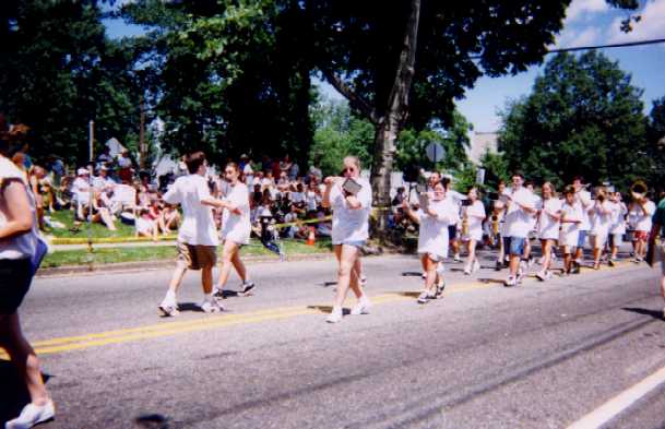 Every summer the band marches in the Fourth of July Parade. However this year, there wasn't a 4th of July Parade but a Fireman's Day Parade instead. But we still like to call it the Fourth of July Parade on June 28 (or whenever the parade actually was). What's funny about the summer parades is that this band is not confined to one particular season. In this band we have graduated seniors and incoming freshman. And it's always funny to watch the clueless freshman try to march for the first time!