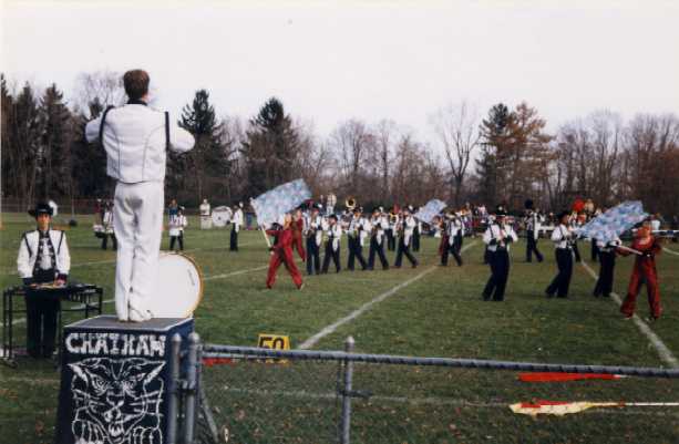 This picture is from the closing piece of our Americana show: "Shenandoah". You see that short saxophone? She should be pretty distinctive since she's surrounded by huge guys. Take a wild guess who that is!