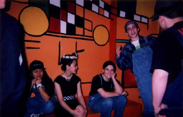 Here's a candid shot taken during Wonderful Town. In this picture are from left to right, Nareena (crew), Cindy (cast), Tara (crew), and Pete (crew). I'm not sure what Pete is trying to convey in this picture. But, then again, knowing Pete, I don't think I even want to know!