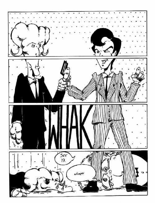 Looking at this I only JUST noticed that I should have extended Bonzo's shoulder into panel #3. Unlike the other guy, he IS supposed to have been lying there the whole time.
