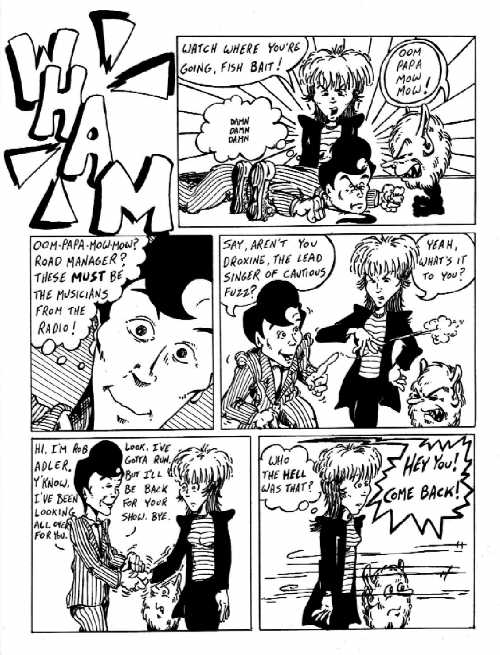 Then in panel #3 we have my common parallel lines (or MOSTLY parallel since I'm too lazy to use a ruler all the time), but in an image that has been turne off-center. It's a way to emphasize the oblique angle and create a feeling of slight confusion or displacement. I do NOT, however, like the shading job I did on Adler's neck ... again, too much unnecessary detail that just draws attention to something that is unimportant.
