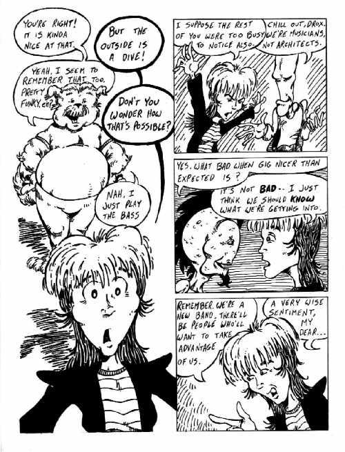 Now, not to over think this (though I think I may have failed in that endeavor all ready), but the underlying message of this page owes a lot to my station in life at the time I wrote Cautious Fuzz. "Know your value, and be careful of people who want to take advantage of you" is something I wanted to pass along to ALL my friends (most of us fresh out of college and starting to make our ways in the world). I suppose another way to say it is "ALWAYS look a gift horse in the mouth."
