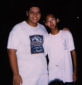 | I know I'm being mean.... But I just can't help putting these two photos up.... It's so funny!!! SOrry guYs.... (They're all my JC frens.. The "muscleman" was my class rep..) |