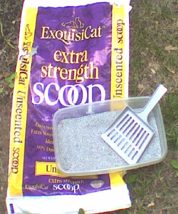 | Another item I recommend for new rat owners is a litter box. These come in all shapes, sizes and prices. My first litter box was a purple ferret litter box, made to fit in the corner of a cage. I accidentaly threw it away during a particularly needed cage cleaning, and substituted this plastic Rubbermaid container. Whatever the case, make sure it is large enough for your rat to fit its entire body in, and then fill it about an inch or two deep with your choice of kitty litter. I have found if the...results are scooped out daily, the rats are more inclined to keep using the litter box, and not to default in the corners of their cage. I had some diffiulty finding a scooper small enough to fit easily inside this container, but finally found a couple for 99 cents. |