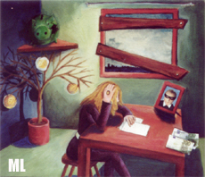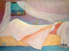 <"Sweet dreams".Acrylics and crayon on canvas.30x40 cm.200 euro. |