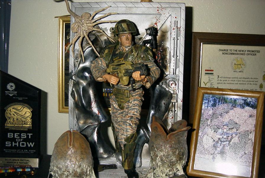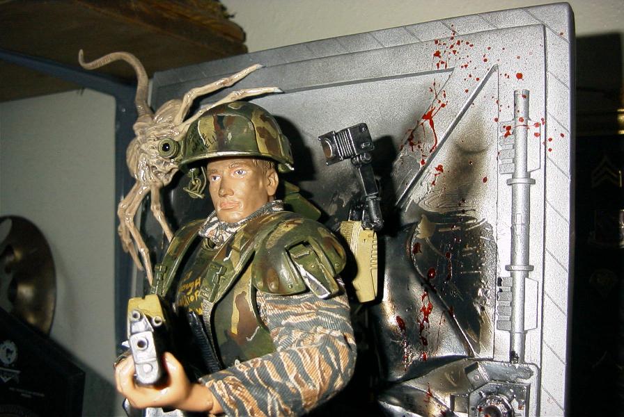 For those of you who would like to own your very own set of Colonial Marine armor, check out the Spatcave! Very reasonable prices and museum quality work! Below is a small diorama I made using the USCM Rifleman model kit!