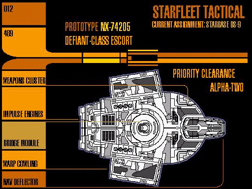 Crew quarters are limited and most of them don't have life support, and the bridge on the Defiant is located on deck one. Stations on the bridge are arranged according to the following.