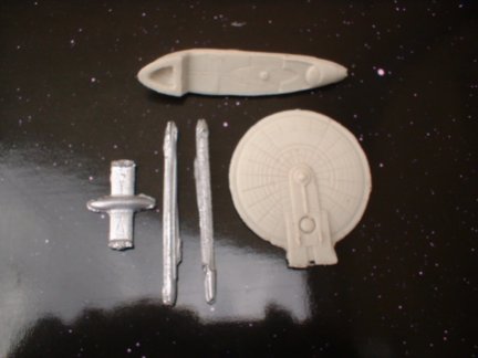 A well detailed kit of the USS Stargazer that measures approximately 50mm in length that is very easy to assemble. Painting is a breeze, but does not look very good if finished in yellow paint. |