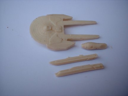 A three piece resin kit of the USS Enterprise 1701-E that measures approximately 60mm in length & 45mm in width. Easy to assemble, but can be a little tricky to paint. |