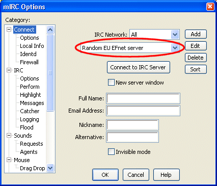First of all, change the selected server to 'Random EU EFnet server' or