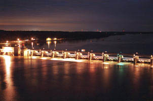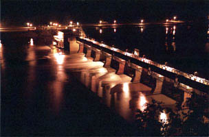 These are some night views of the dam and river. As I stated before, night hiking on the trails is prohibited. A special night permit is required to be on the trails after dark. Therefore, these views are presented to you on this web page for your enjoyment. The view is splendid at night from the top of these bluffs. It was so calm and peaceful, we just had to sit out there and enjoy the view until after midnight. I plan on putting some more night scenes on this site as I get them.