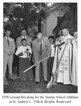 | Do you have any written information, interesting stories or pictures, etc. related to St. Andrew's history in the Heights? If so, please contact Barbara Hirsch by phone (281) 890-7264 or e-mail. We would love to include it in this section and any input from you would be greatly appreciated! |