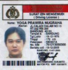 nama asli : YOGA PRAWIRA NUGRAHA alamat : Jl. Caladi Dalam no.15 RT 002 RW 009 BANDUNG 40183 Tempat tgl lahir : Bandung 19/12/1976 Tinggi : 172 cm Pekerjaan : Swasta No.SIM : 761213050300
