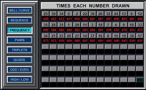 The Numbers Frequencies option allows the user to instantly computes how many times each numbers was drawn.