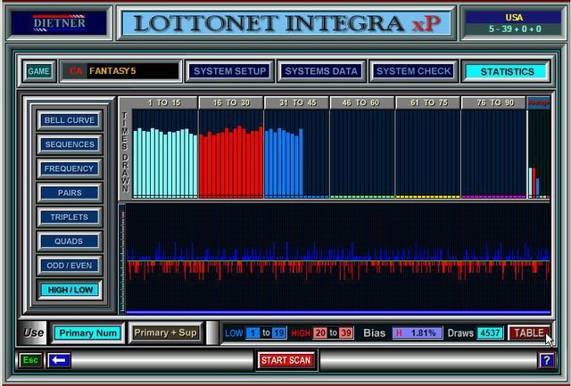The High/Low numbers scanner separates all winning results on HIGH and LOW numbers. It provides a graphical display of groups of numbers (from Low to High).