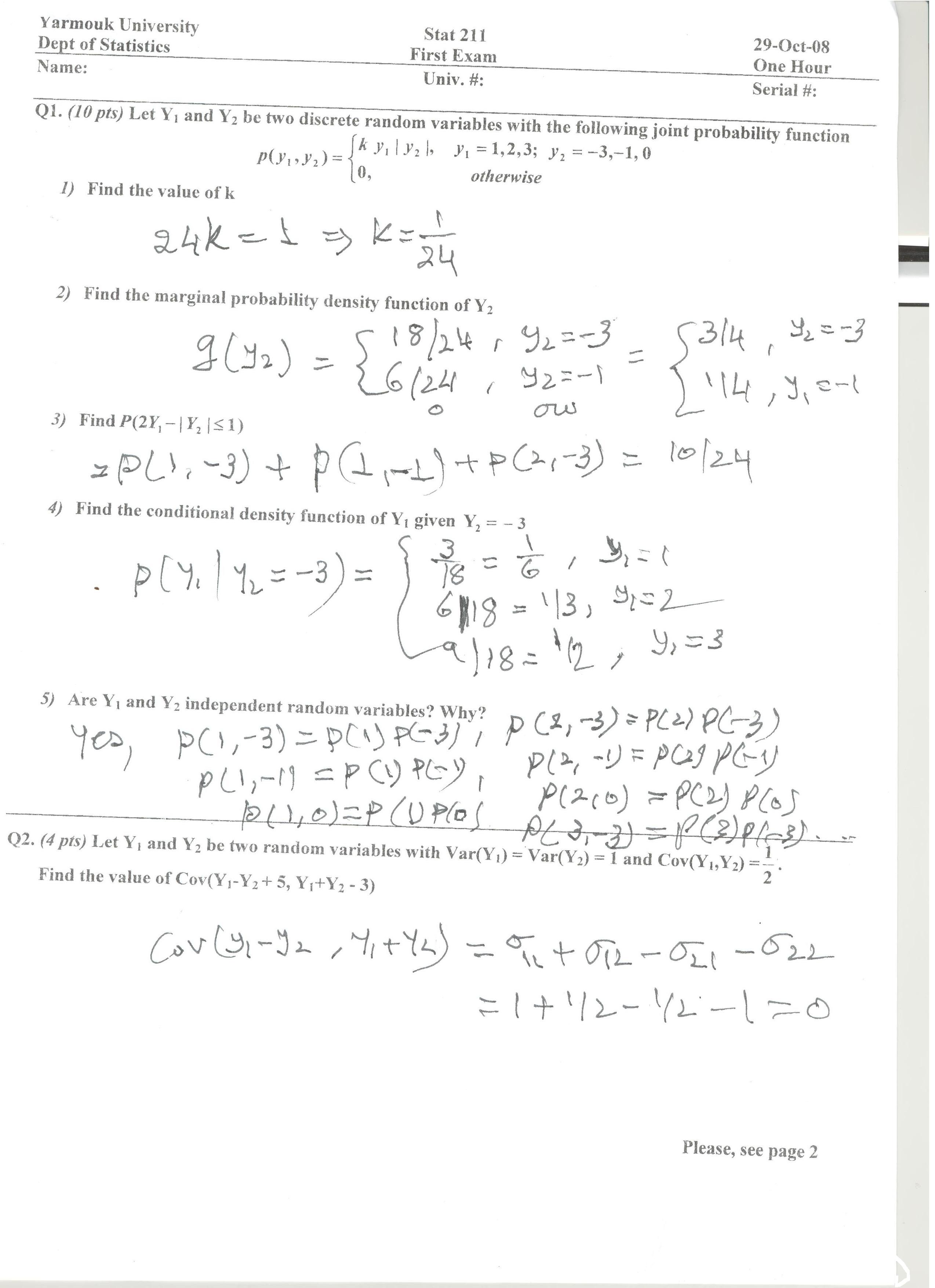 | First Exam + Solutions (page 1, page 2) First Semester 2008 | ||