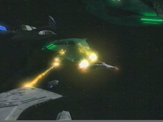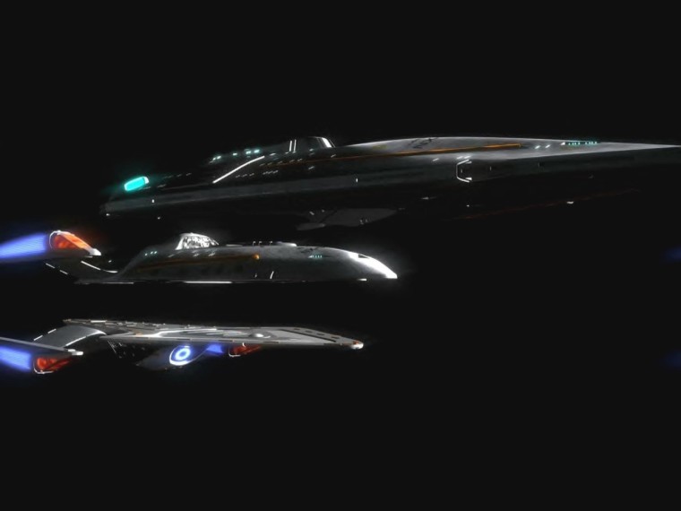 | The most unique feature of the Prometheus is the multi-vector assault mode. The ship separates into three individual sections to attack their target. Each section has two warp nacelles, and are heavily armed with phasers, quantum torpedoes, regenerative shielding and ablative hull armor. The top section has 6 phasers, the middle 6, and bottom with 8 phaser arrays. This makes her the perfect warship, and even though Starfleet isn't in the business of making ships only for battle, the war with the Dominion called for appropriate measures for the security of the Federation. |
