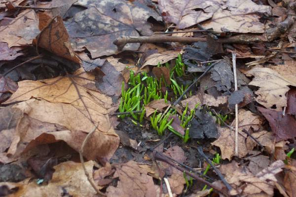 i'm not the only one who thinks this weather is spring-like! these shoots were just starting to poke up through the leaves.