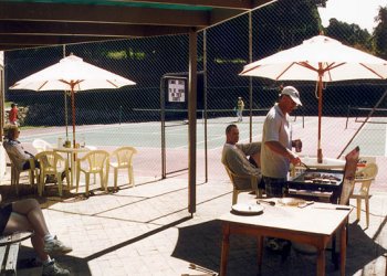 not playing tennis! Helpful onlooker is Paul Juzulenas. |