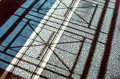 projected onto the carpet by the afternoon sun. I had thought that John Smith Murdoch was responsibel for the design because it contains plenty of 90 degree angles and squares but the well-known entertainer Jeanne Little says that her mother Katie Mitchell was responsible for the design, which symbolises a flag. It can also be seen on buildings in and around Sydney. Katie Mitchell had a successful business designing and manufacturing ornamental ironwork. (Article in Sunday Life section of Sun-Herald, 7 May 2000.) |