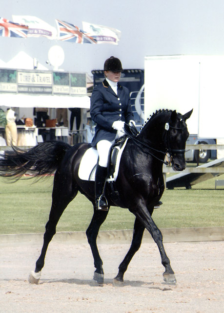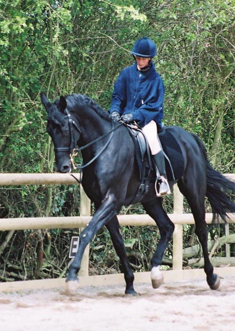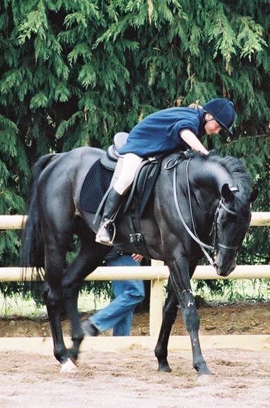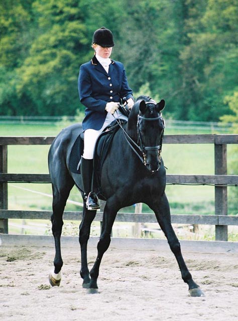 Ratsastaessa Demoni vasta herkkä onkin. Demoni ei malta seisoa paikallaan, edes kun sen selkään noustaan. Kannattaa vaan kääntää Demoni pienelle ympyrälle, kun esimerkiksi kiristää satulavyötä. Demoni ei siedä kannuksia, eikä pohkeilla hakkaamista, jahka ohjista kiskomista. Silloin Demoni saattaa viskata ratsastajan tantereeseen mahtavalla pukkisarjalla tai nousemalla niin pystyyn, että ratsastaja tipuu, mutta Demoni saattaa kaatua. Demoni ei pienestä sätkähdä. Maastossa se tosin kuumenee usein ja säikkyy lähestulkoon kaikkea. Kyllä se silti jotenkin pysyy käsissä. Kentällä Demoni on kuuliainen ja kiltti. Demonilla on energiaa vaikka muille jakaa. Se innostuu usein ja lähtee rynnimään. Silloin se nostaa päänsä ylös ja Demonia ei mikään pysäytä. Se menee vaikka läpi harmaan kiven, tosin se saattaisi hidastaa hiukan vauhtia ( xD ). Demonin askelet ovat ihania kun se keskittyy, mutta jos se lähtee rynnimään, niin askeleetkin muuttuvat inhottaviksi tai jos se ei jaksa keskittyä tehtävään. Koulu on Demonin erikoisalaa. Esteillä se tykkää vaan laukkailla kiitolaukassa esteille. Kyllähän se hyppää, mutta vauhtia on liikaa. Ja se ei tunnu kivalta. Ihmettelen miten Demonista on tullut koulupainoitteinen, kun upean orin molemmat vanhemmat ovat estepainoitteisia. Demoni käyttäytyy kilpailuissa arvokkaasti, tosin välillä se innostuu esittämään tammoille. Ihaninta Demonin mielestä on kilpailuiden voittaminen. Mutta se ei anna laittaa ruusuketta rauhassa, vaan yrittää tuuppia palkintojen jakajaa. Siinä on viellä parantamisen varaa. Kilpailuissa taluttaessa aina kuolaimet, ettei satu vahinkoja[*vinks*].