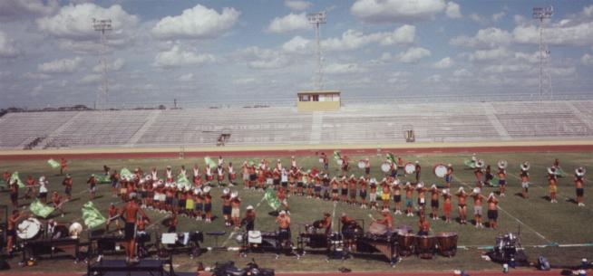 August 2001 - Buffalo, New York - Performing in DCI World Championship Quarterfinals. August 2001 - Buffalo, New York - The entire Front Line before our last rehearsal of the season on Finals morning.