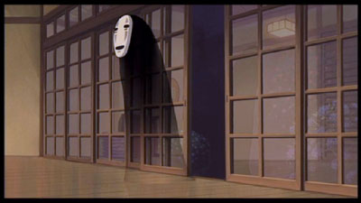 If looks can kill, the Kaonashi, meaning faceless, should be of no harm. Yet it dishes out more trouble than the greedy workers can handle. His motives are never clear, including reasons as to why Chihiro is the only person he is willing to help and listen to.