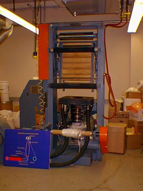 This line was used for the production of film in tubular form. The film was blown upward and was used for process development or for material evaluation.