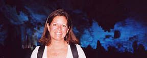 Here is Sue in the Reed Flute Cave. It is a huge cave, and in this area Bill Gates of Microsoft fame and fortune hosted a formal sit down dinner, catered of course, for his Chinese hosts. Wouldn't you have liked to have been there? I would!! |