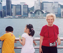 We said goodbye to Cheng in Hong Kong, and passed through Passport Control before we could board the hydrofoil bound for Hong Kong. This was Friday, June 1, 2001. We had been on the go constantly from May 21st when we left San Francisco. The trip on the hydrofoil was much slower than we had anticipated, but we were finally there. It took a while to go through passport control in that city, but once we did we were able to locate our city guide right away. He led us to our bus, and we were off, through a long tunnel, to the Mandarin Oriental hotel. Once we were checked in we had a nice dinner with Kate and Joe in an ultra nice coffee shop. This hotel was not only the best one of the trip, but also one of the best hotels I've ever stayed in, and the service was superb.