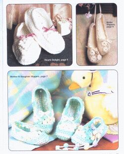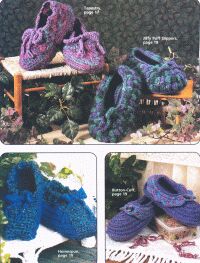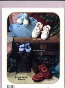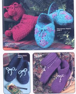 Moccasins, Foot Warmers, Ballet Slippers, Tied Instep and Pixies to Crochet!! Size 7 1/2" - 8 1/2" Children Size 9" - 10" Womens $10.00 - $18.00 |
