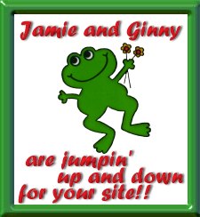 JAMIE & GINNY'S AWARD: (Received on 1st June 1999) Ginny wrote to me:" I just made a new award for my page ( Jamie and Ginny's Homepage) so I would love to give it to ya!! Hope u like it=)" Thanks a ton so much Ginny and Jamie, for this delightful award. I feel lucky for receiving your award. |