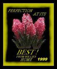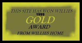 WILLIE'S 1999 GOLD AWARD, PERFECTION AT ITS BEST: (Received on 4th June 1999)Willie wrote: "I think you have a very wonderful home page and I like to see pages with lots of heart, love and lots of very hard work put in them I will come to visit often Willie from Vermont a friend always" Thanks a ton Wille, for these awards and the kind words. You are always welcome to visit again. It is a privilege to hear this! |