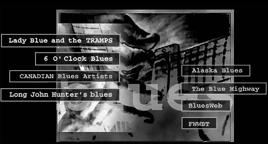 Lady Blue and the TRAMPS: Blues band based in northern New Jersey with a rockin', soulful edge that'll drop your socks, shake your butt! Reviews of new indie, sound byte, bios, picture, clubs with maps of locations, and many more cool blues sites!! 6 O'Clock Blues: The official website of the 6 O' Clock Blues radio show hosted by Sean, Keith, and Chris on 88.7 fm, WSIE in St. Louis every Monday night from 6 to 9 pm.. CANADIAN Blues Artists: Cool site with info and good sound clips. Long John Hunter's blues: The official Long John Hunter site, cool site! Alaska Blues: Visit this site and find good info about Alaska blues scene. The Blues Highway: Great site! "Where the history of the blues is more than a musical chronology" BluesWeb: Excellent site, great sound clips, pics and a lot of interesting info. A "must visit site" for all blues fans! Friends World Wide Blues Tribute: Cool site hosted by some blues lovers from ARGENTINA, Gustavo "Bohemio" , Blind Willy and Alfred Bell.