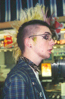 1) Chris shamelessly flaunts his band Genocide 2000 (G2K) for the camera...hey-free publicity!