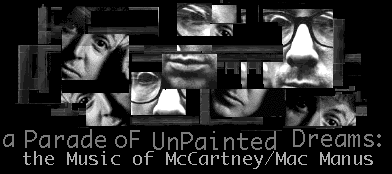 Introduction During the late 1980's and early 1990's Paul McCartney and Elvis Costello released twelve (and counting) songs which they had co-written. All of thes songs were credited to McCartney/Mac Manus, and the majority of them (10) were written in 1987. These songs span five solo albums, and range in quality from instant classics and chart toppers, to forgettable and often times silly tracks. This musical collaboration also continued into the recording of these songs, most notably on McCartney's excellant 1989 release Flowers in the Dirt. Costello appears on four of the tracks on this album, and even sings a duet with McCartney on the track You Want Her Too. McCartney later added his distinctive bass playing to two of the tracks on Costello's 1989 release Spike. One of these being the top-twenty McCartney/Mac Manus track, Veronica. Costello On McCartney Cick here for what Costello has had to say about this musical partnership. The 1990's Five more McCartney/Mac Manus tracks were released in the 90's; two on the dense Costello release Mighty Like a Rose (1991), two on McCartney's 1991 release Off The Ground, and one on Costello's extremely listenable All This Useless Beauty. Final Thoughts McCartney and Costello may seem strange bedfellows at first glance, yet after further exploration this partnership seems to have been almost a perfect match. On some of these tracks these two seem to have been able to combine their individual strengths, McCartney’s melodic sense and Costello’s lyrical savvy, to create some truly excellent songs. If you have any information on this partnership, or know of any unreleased material, please contact crobles@montmush.com |