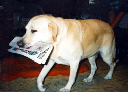 Shannon sent us this photo of her beloved Roxi after reading the Zen Roxy column in the first issue of CH Confidential. "You named your column after my dog!" (Uh, something like that...) We're told that Roxi loves to carry around newspapers that contain reviews of "Try Whistling This" so she can show all her pals. Good girl, Roxi.