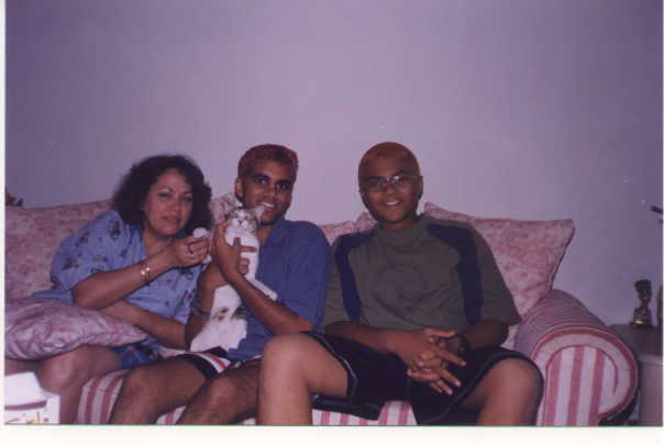 This is my best friend(shehan) and his mum..and they're cat. (I'M THE GUY WITHOUT THE CAT)