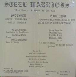 また出た! 覚えられないバンド(笑)。 なんだかコンピレーションのような題名ですが、れっきとしたニューヨークあたりのトリオバンドの12インチシングルです。 ジャケットはほぼ完璧。 ね〜ちゃんを助けたのか、さらって行くところなのかはわかりませんが。中身も説明の必要もありません。 すべてのフォントがEnglish Gothic系なので、読みにくいったらありゃしない。 (^^; (裏面) どなたか、このバンドの素性についてお知恵を拝借ください。 ちなみに、Warrior Recordsからのリリースです。 全然ヒントにならんような気もする。(笑)難易度:B \2800