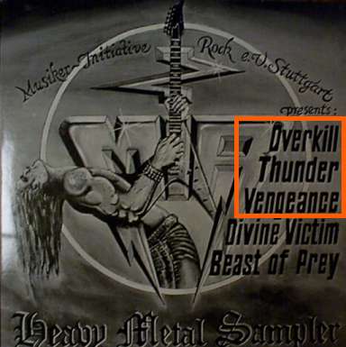 まずは、ジャケットをご覧ください。 なんと!83年にして、THUNDER, OVERKILL, VENGEANCE と今をときめく(?)3バンドのデビュー以前の音源を収録しています!