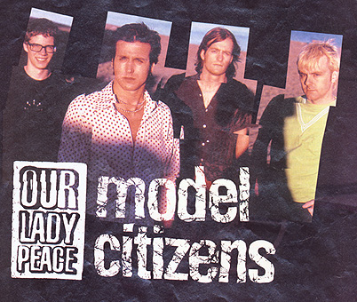 "Is that Our Lady Peace?" A troupe of fans enters the store after recognizing the fellows reclined in the front window display. The band finishes the last of the poses and happily obliges the autograph seekers, producing shrieks of delight. After this modicum of excitement, we reconvene at a pub across the street, where the group's most outgoing member, guitarist Mike Turner, justifies the afternoon of smiling for the camera. "It's part of the gig, really. In order to do what we do, we sort of have to do that as well. Take it for what it's worth."